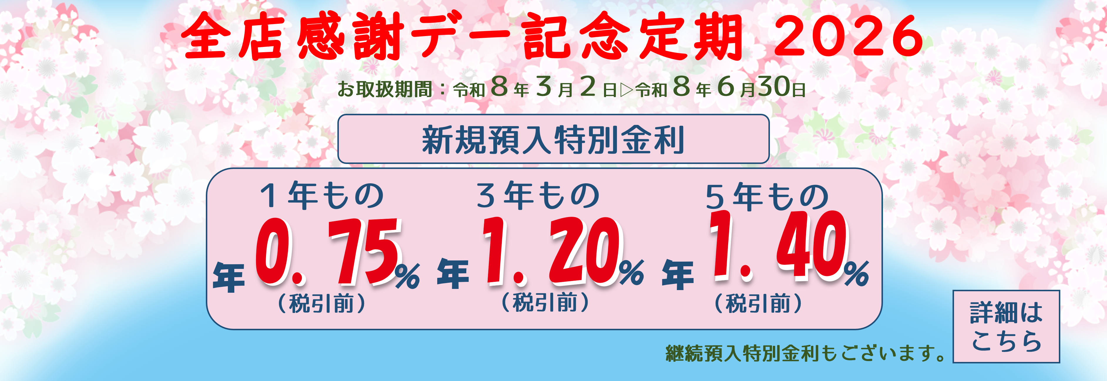 - 3月2日から「全店感謝デー記念定期2026」の取扱いを開始します!