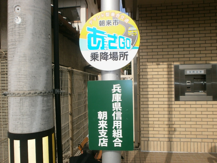 当組合朝来支店も、乗降場所として案内表示板が設置されていることから、この度、「あさGO」を快適に利用していただきたく、当組合独自に待合ベンチを設置しました。