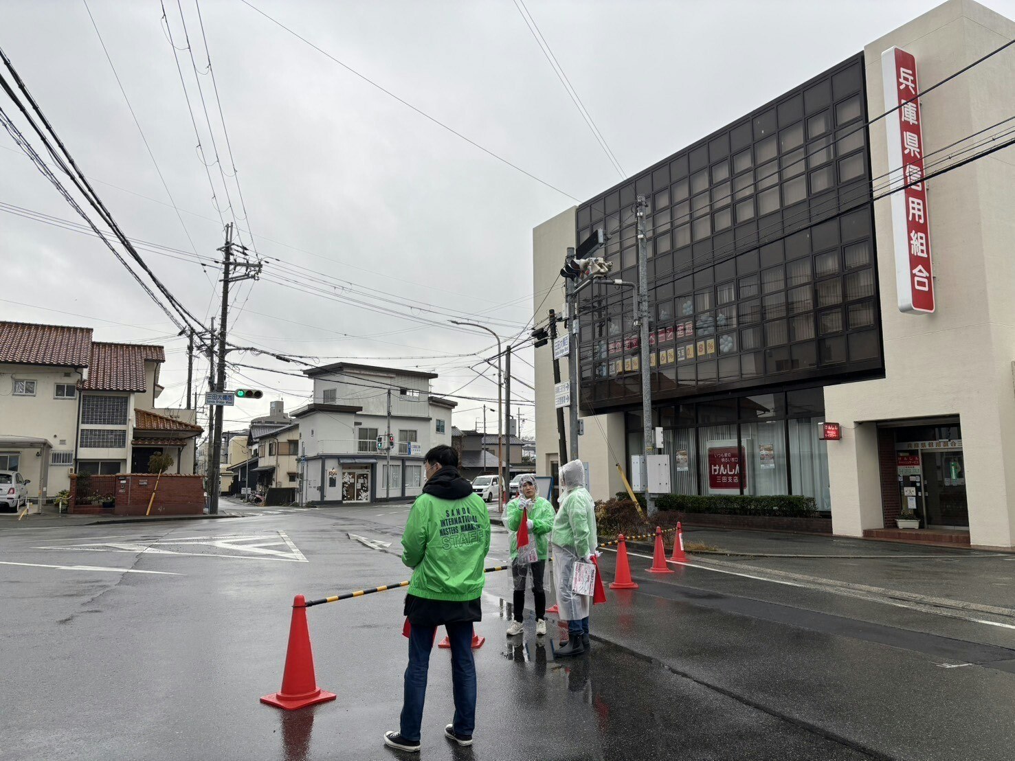 12月21日(日)、三田市主催の「第37回三田国際マスターズマラソン」が開催され、三田支店職員6名がボランティアスタッフとして参加しました。当日は雨天でしたが、参加ランナーや応援者等、多数の来場者で賑わう一日となりました。